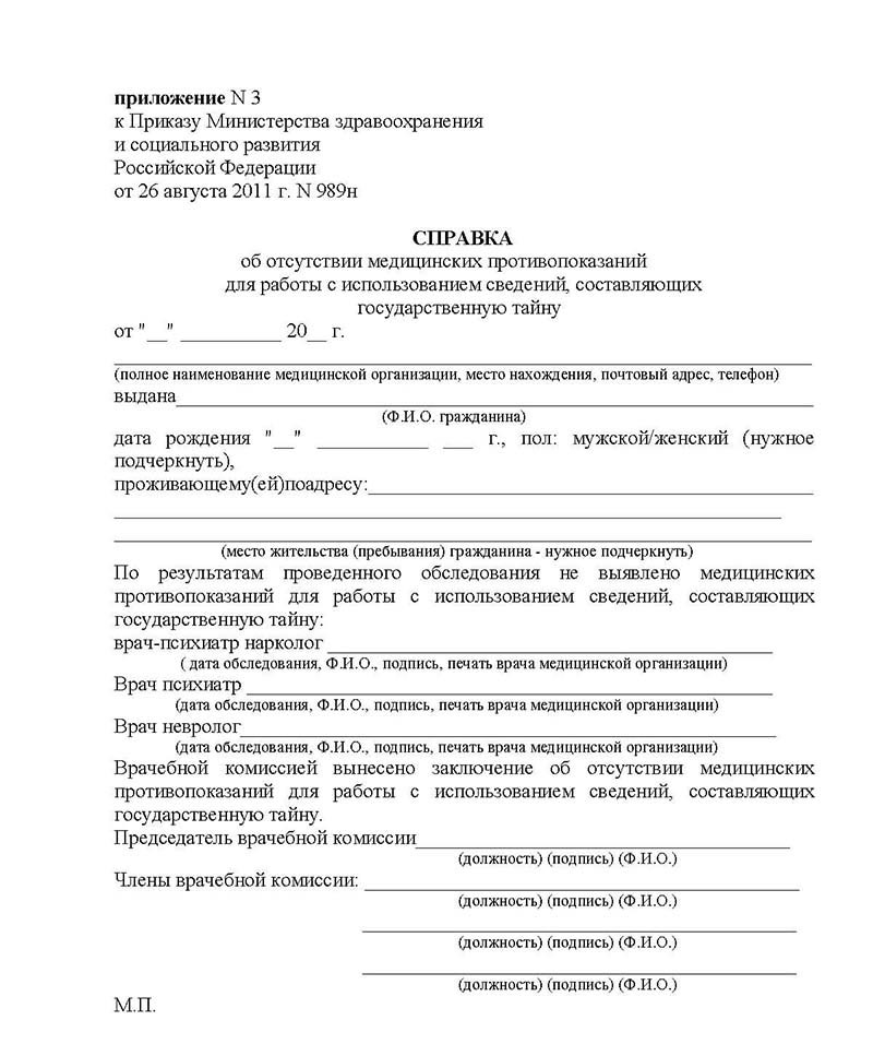 Медицинское заключение для допуска к гостайне по форме 989н в Москве