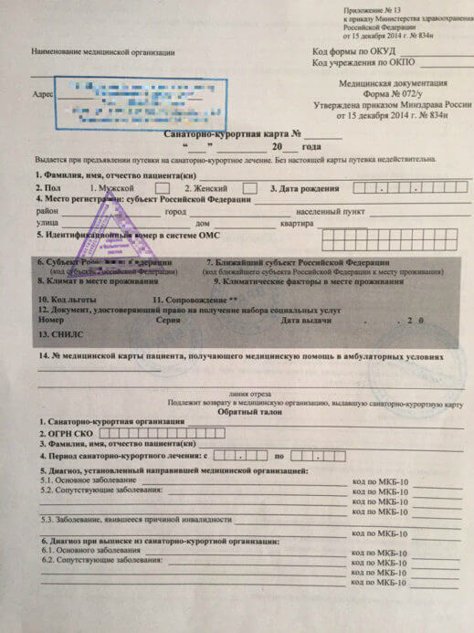 Справка формы 072/у – это санаторно-курортная карта, необходимая для лечения в санатории или на курорте. Содержит данные о состоянии здоровья, диагнозах и рекомендациях по лечению.